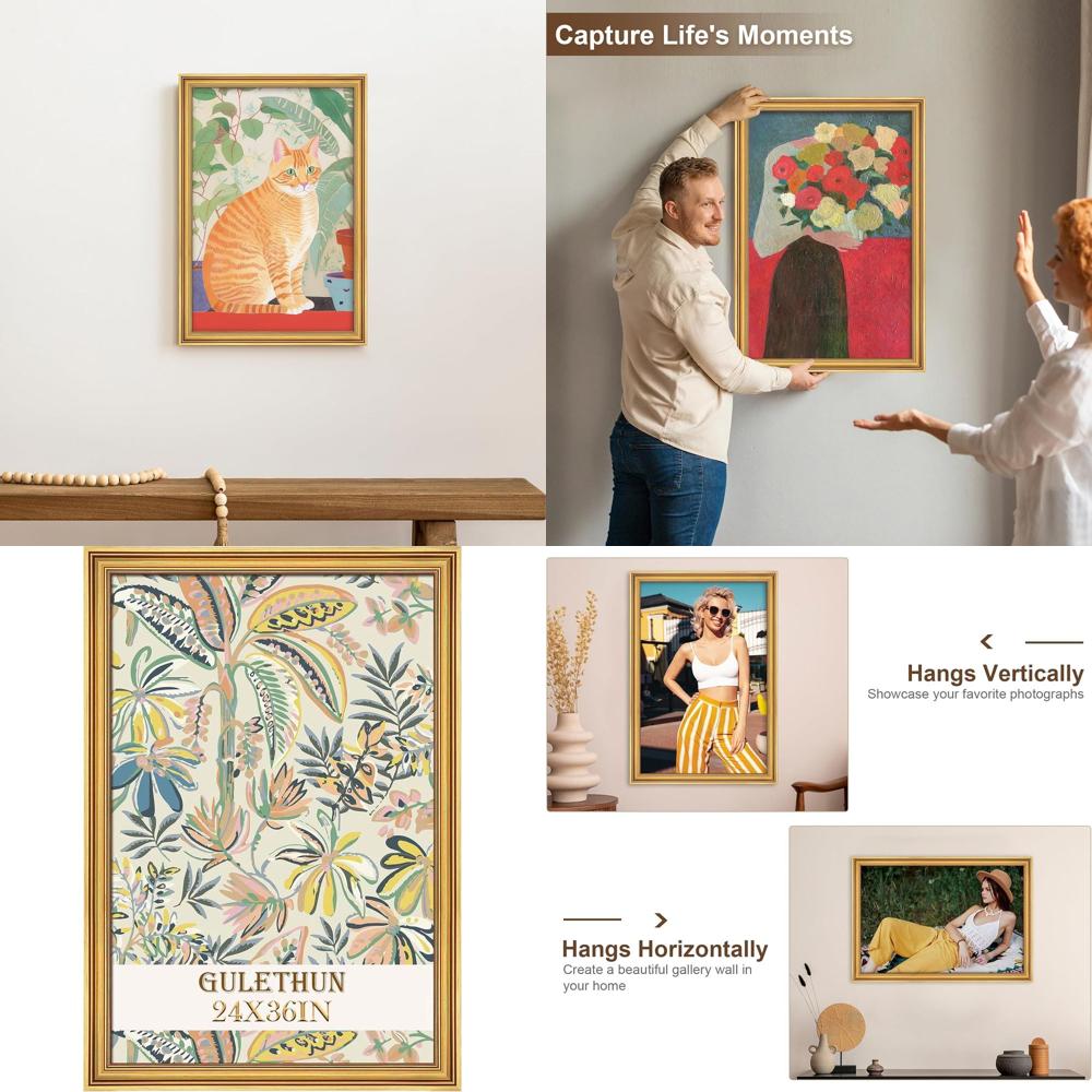 Rustic 24×36 Gold Picture Frame – Transitional Modern Style for Home, Vertical or Horizontal Display
