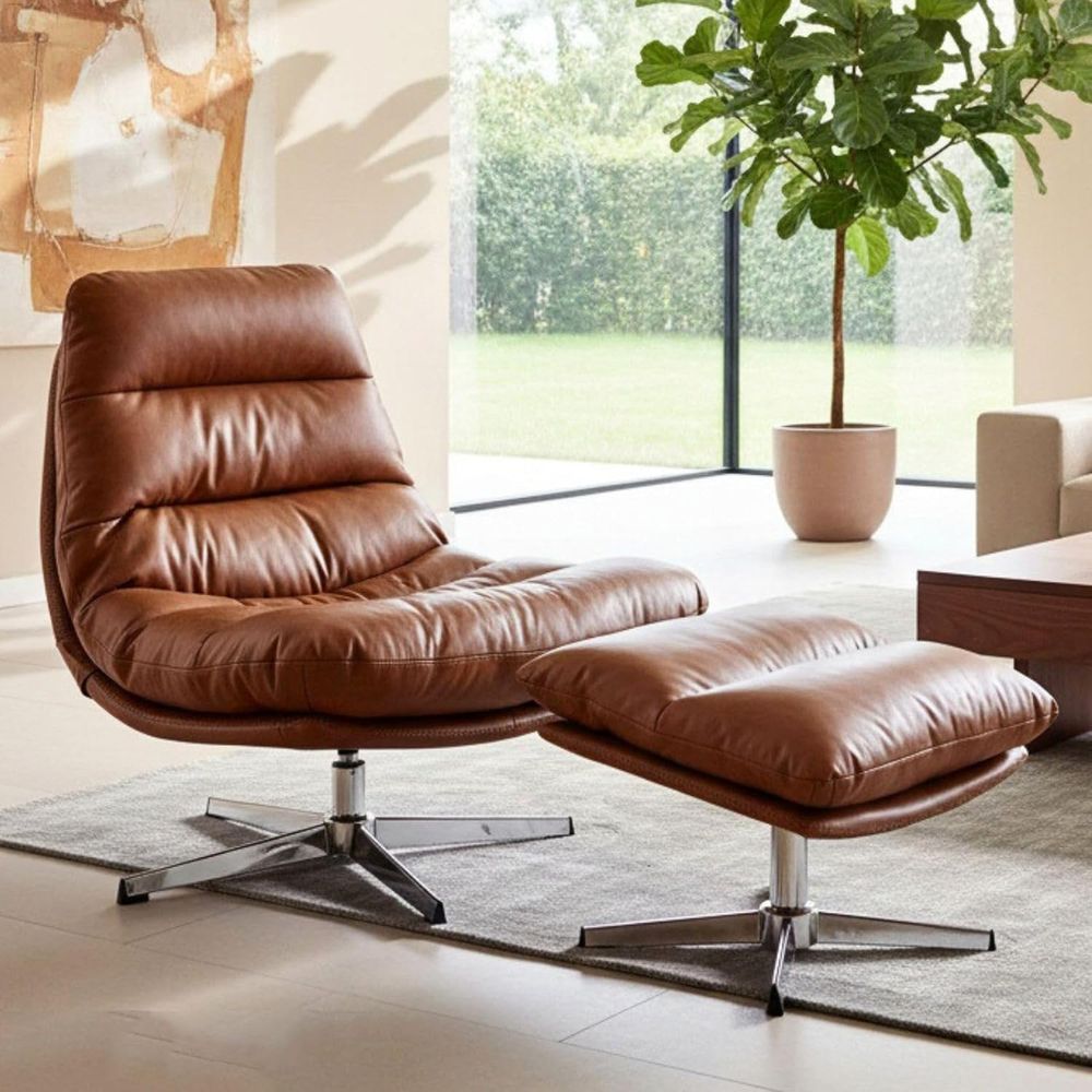 Leather Chair and Ottoman – Oversized Swivel Lounge Chair with Footrest