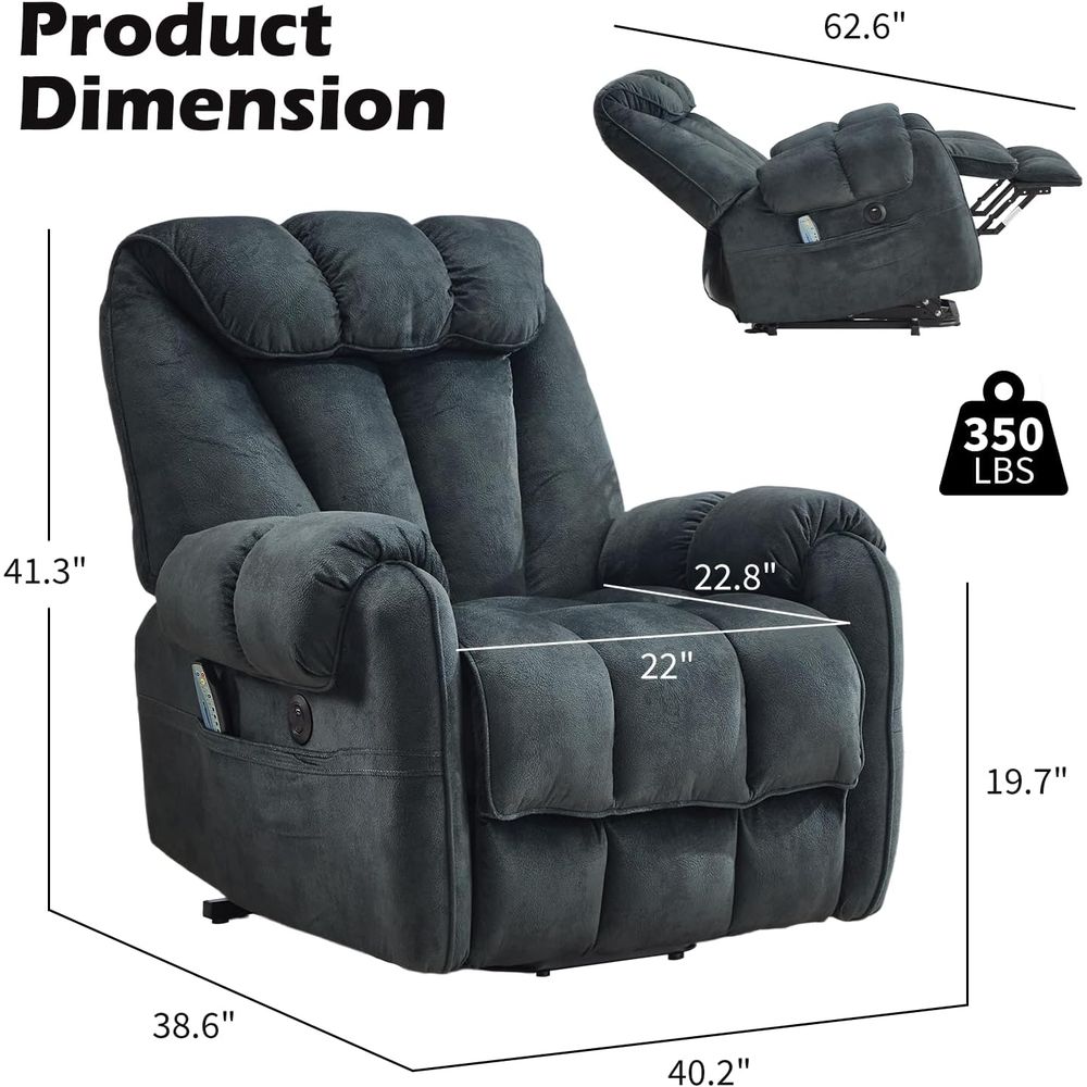 Chair and a Half Recliner with Massage & Heat – Oversized Power Lift Chair with USB & Storage