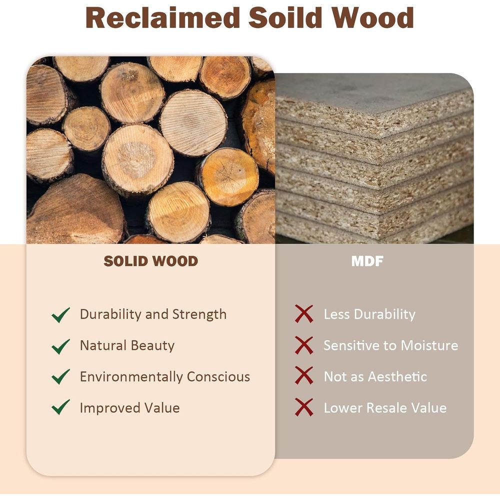 Solid wood outperforms MDF or particleboard. It ages well and gains more character.